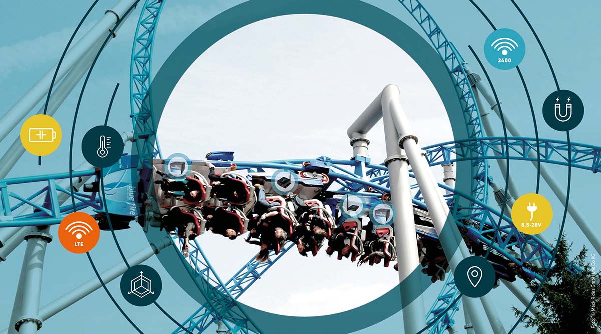 Um ein kontinuierliches Online Condition Monitoring zu ermöglichen, haben wir auf einer Achterbahn ein nemione®-Messsystem installiert, das mit Hilfe von drei kompakten Funksensoren und einem Gateway mit integrierter Sensorik verlässliche Daten liefert.